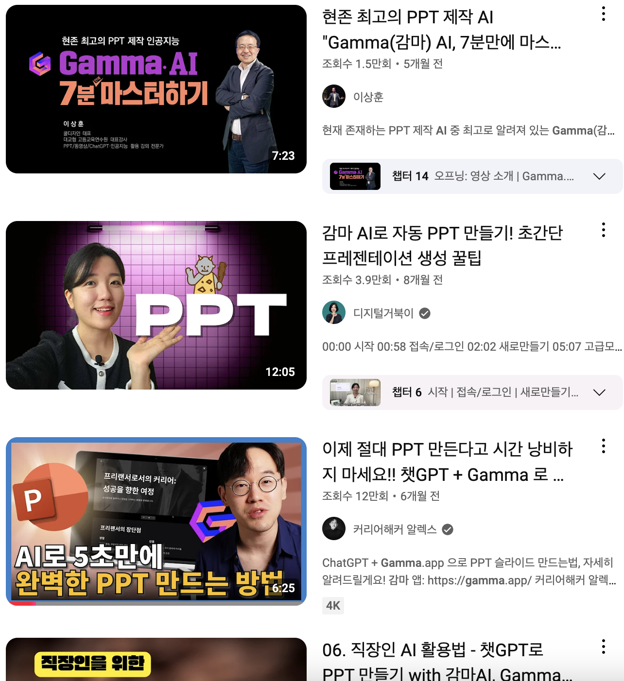 Youtube를 보더라도 감마 AI의 효율성을 극찬하는 영상들이 엄청나게 많습니다.