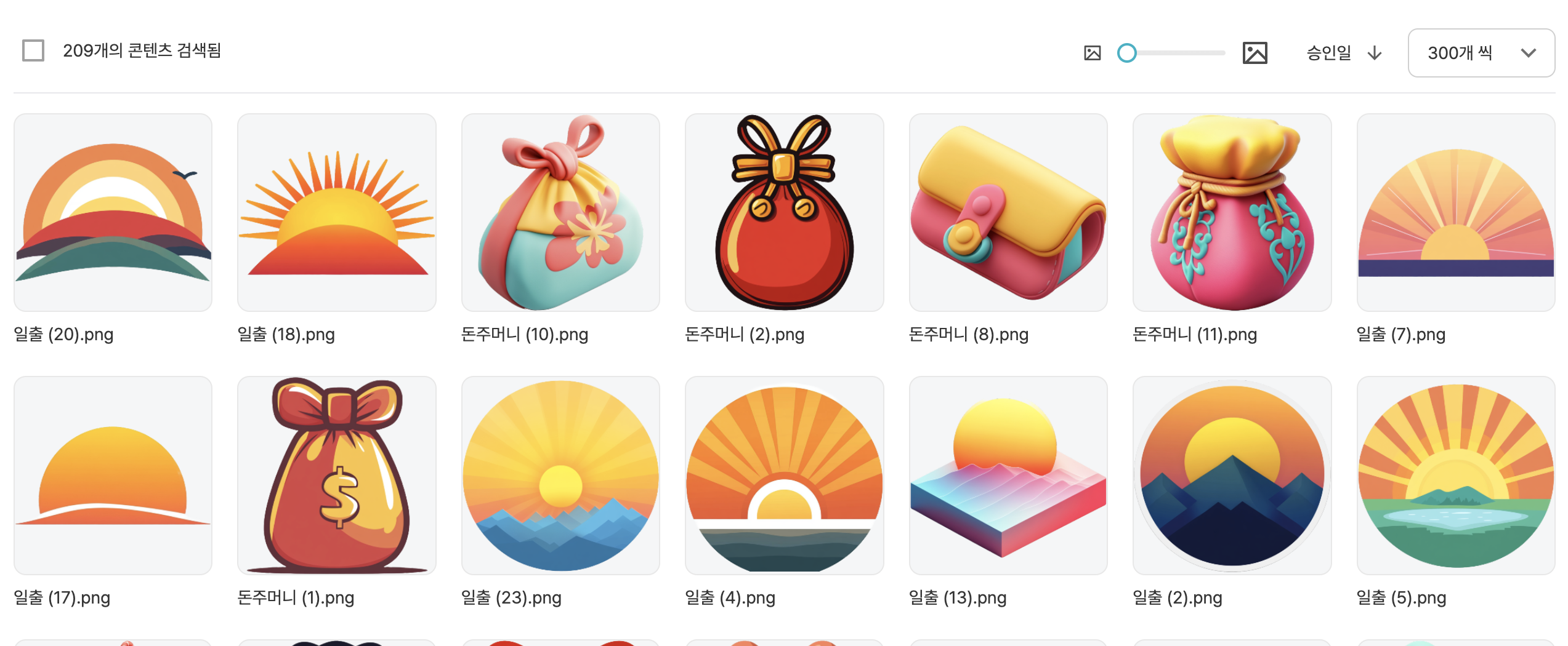 - 등록된 아이콘 수: 209개