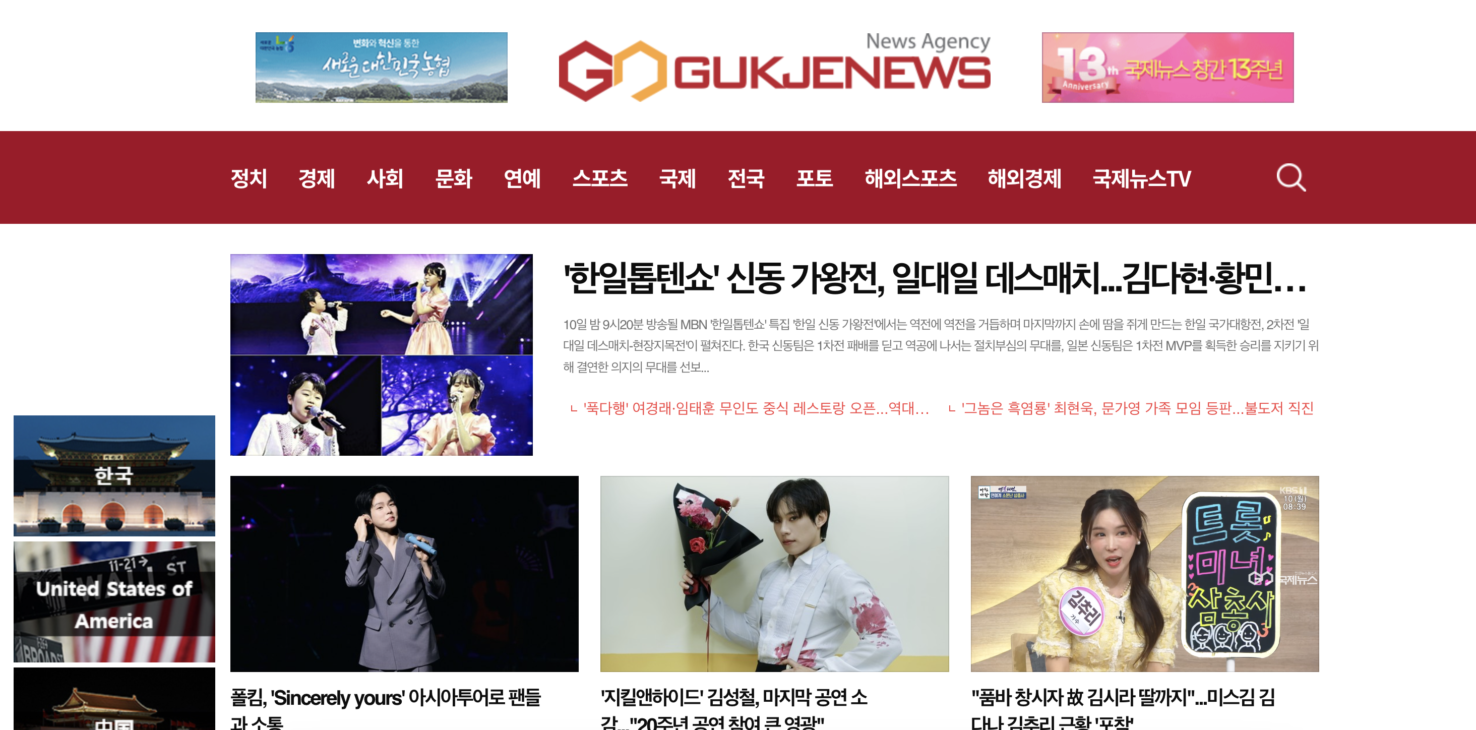 국제뉴스 정치,경제,사회,스포츠,연예 등 다양한 분야의 기사들이 올라옵니다. 저는 주로 연예 카테고리에서 글감을 얻고 합니다 한번 들려보세요 아래 링크를 남겨놓겠습니다.