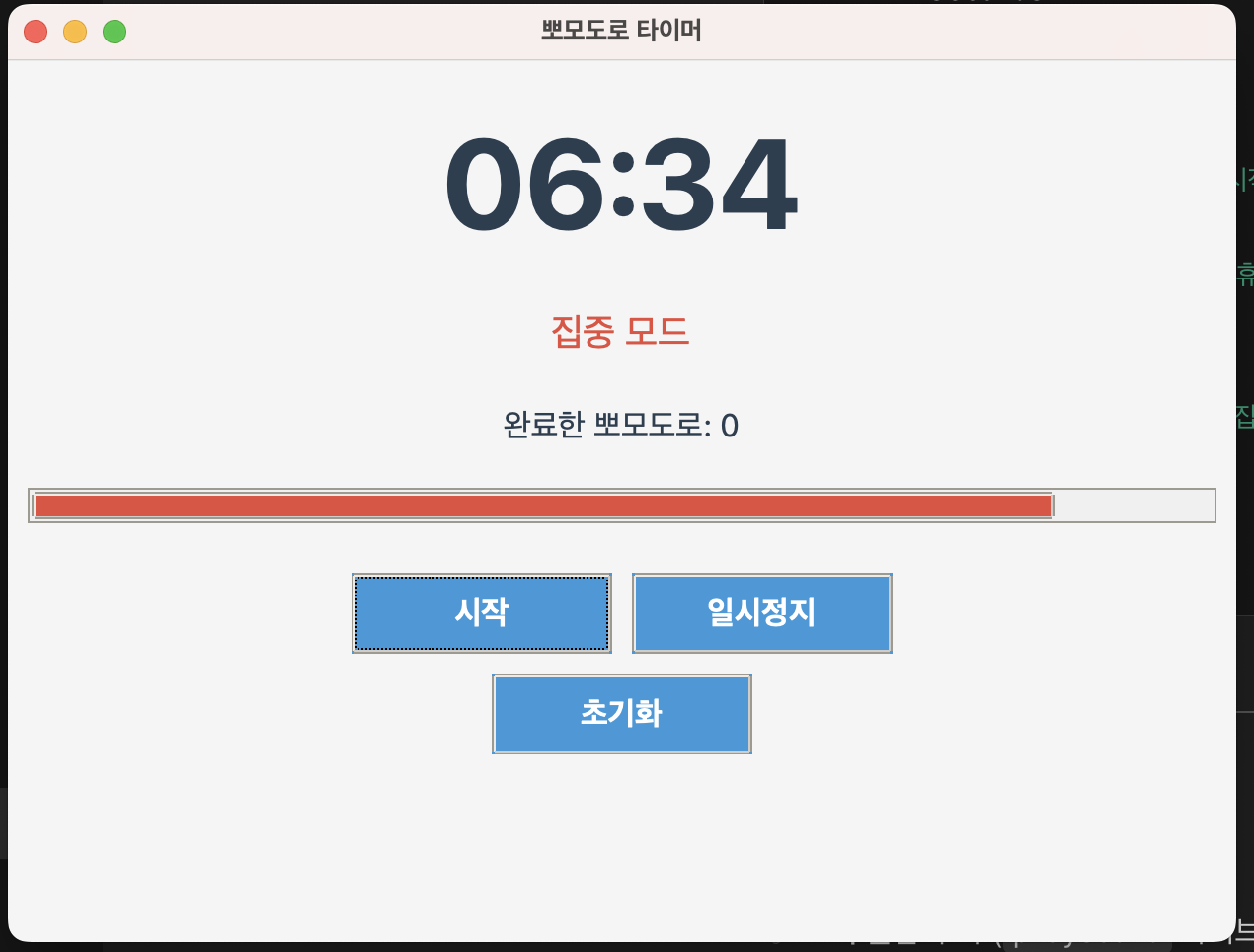 제가 만든 뽀모도로 타이머의 모습입니다. 😅
